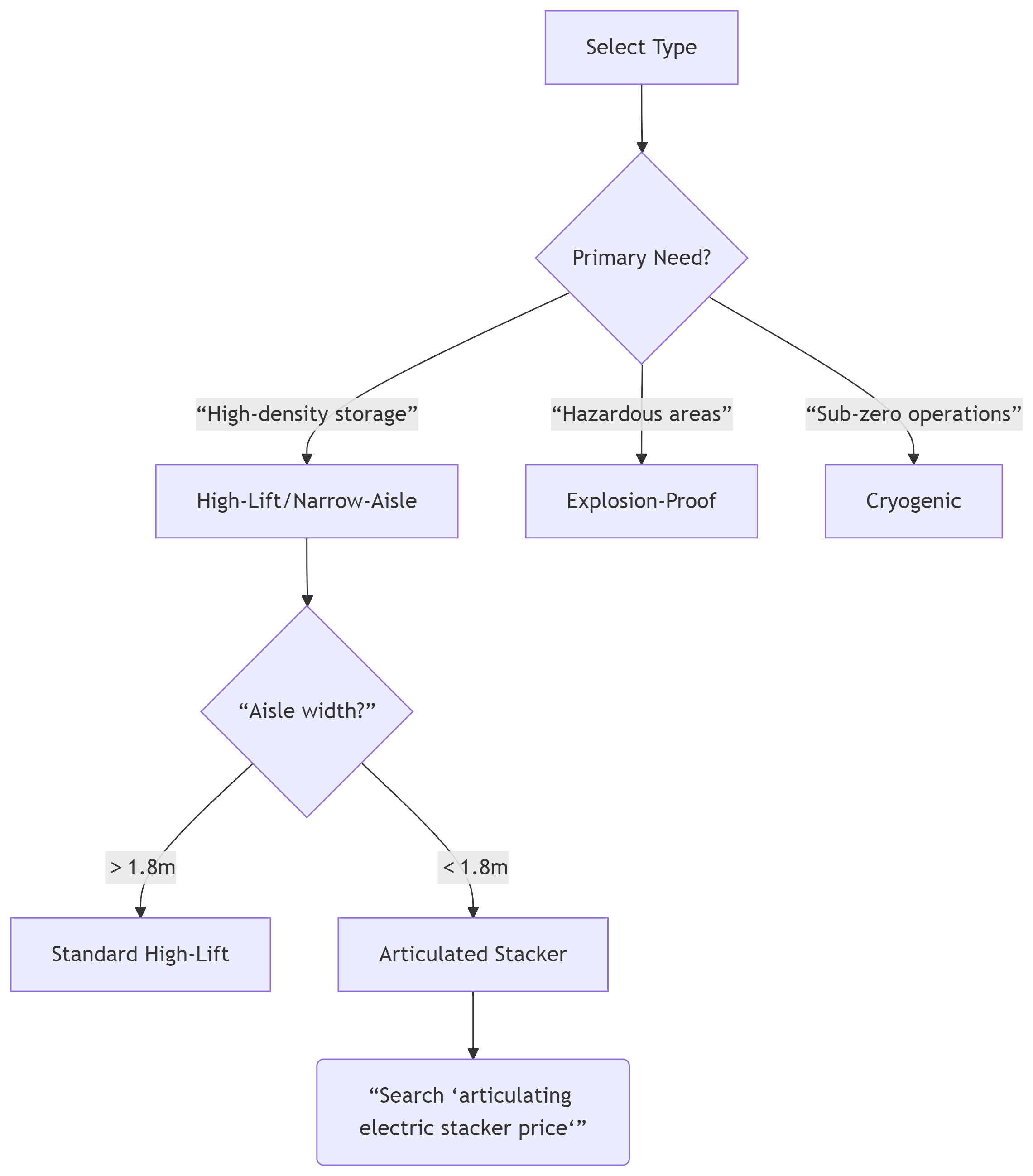 Type Aisle Width Target Keyword Tri-Directional 1.6-1.8m "tri-directional electric stacker"Articulated 1.4-1.6m "articulating narrow reach truck"3. Explosion-Proof Electric Pallet Jacks