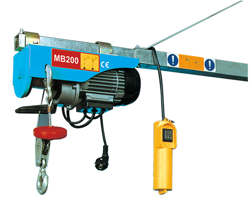 The Mini Electric Hoist has models MB100, MB125, MB150, MB200, MB250, MB300, MB350, MB400, MB500, MB600, MB100B, MB200B with single wire and double wire.