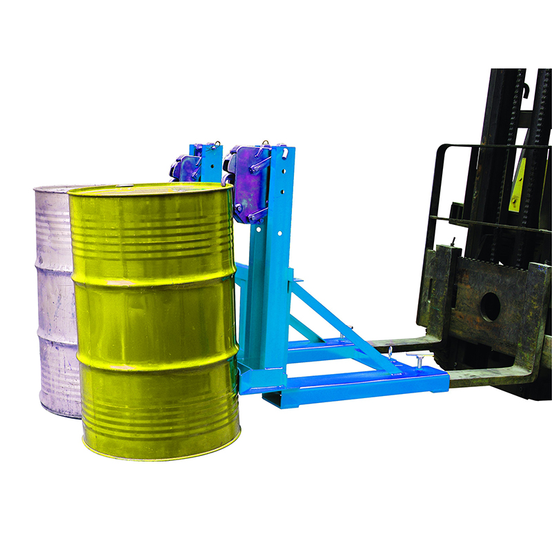 This DG series drum grab can carry one or two drums by the automatic grip lock, maintains a positive grip over rough floor surface. It is designed to cooperate with forklift conveniently. DG360A, DG360B and DG360C is for 1 drum, DG720A, DG720B and DG720C is for 2 drums. With the pure mechanical mechanism, it can automatically carry one barrel at a time, relying only on the action of forklift, and no other power is needed. This model can handle many different types of drums, such as steel oil drums and plastic oil drums. Automatic mechanical operation saves time and effort. Besides it is connected with the cargo fork with self-locking device to ensure that the oil drum will not slip when used on slope and bumpy road.