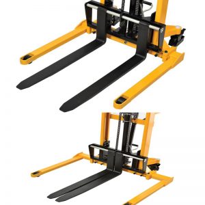 Warehouse stackers are an economical and durable option to powered lift trucks providing a simple, easy way to lift, lower and transport materials with minimum effort. Welded all-steel frame and powder coat finish provides long lasting use and protection. The hand operated hydraulic pump handle is similar to a pallet truck handle, offering easy lifting action and convenient steering in congested areas. Available truck types are Adjustable Straddle Legs and Fixed Straddle Legs. Load capacity is 2200 lbs.