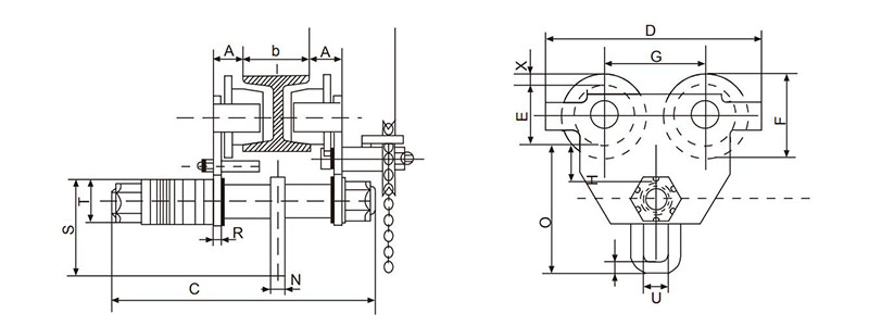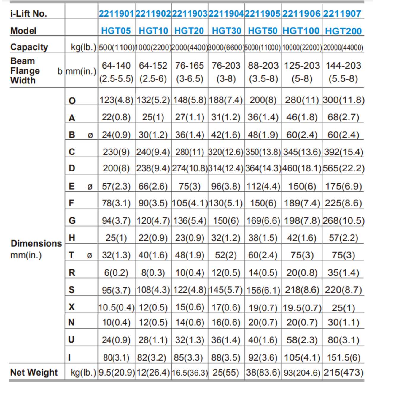 HGT05 500kg (1100lbs) with beam flange width: 64-140mm (2.5-5.5in.);
