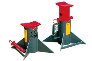 Forklift support stand design addresses safety and ergonomic risks associated with the manual handling of traditional steel stands in their placement and removal from under machinery and equipment. It has a heavy duty design and wide base and is used in pairs, and these are designed and dedicated to keeping you safe. Features a locking rack and pawl that give you the security and stability where you need it most. The large saddle surface area provides better contact with the load being supported. These stands will handle a wide range of vehicles including small cars and light duty trucks. Constructed of high-grade forged steel with a welded frame design, these jacks are built to exacting standards for quality and durability. The single piece self-locking, multi-position, forged iron ratchet bar provides precise adjustments.
