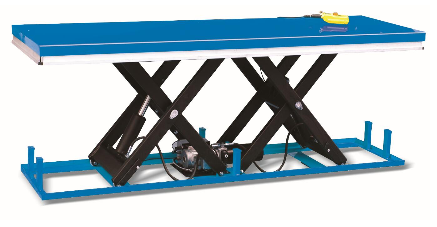 Production can be executed by raising the working load to the suitable height. In addition, the large platform lift table can be used in above-floor or in-pit applications so loads can be lifted with ease where you require them to be handled. The high quality scissor lift table stands up to day-to-day working environments; allowing you to get on with the job in hand.