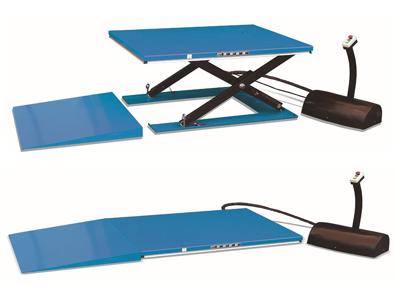 Features of low profile electric lift table▲ Heavy duty design with larger platform▲ These tables achieve a low closed height, eliminating the need for a pit installation.▲ They are manufactured to all European safety standards including EN1570:1999.▲ Remote power pack with pedestal and controls, IP54 protection.▲ Upper platform fitted with safety perimeter to prevent descent on contact with obstructions.▲ 24V control box with UP and DOWN buttons and emergency stop.▲ External power pack equipped with a relief valve against overloading and a compensated flow valve for controlling lowering speed. Power supply are AC 380V/50HZ/3phase.▲ Hose burst safety valve to stop the lift table lowering in case of hose breakage.▲ Removable lifting eyes to facilitate handling and installation of the lift table.▲ Oil-less bushings on pivot points.▲ Loading ramp is a standard equipment.