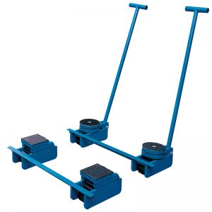 Complete skate kits includes four roller skates, two turntables, two packing plates, two steering handles, two link-up bars, one draw bar and one metal box. This unit is mainly used for short, variable transportation distances. For installation works and movement of heavy loads. The steering handle gives you precise control making it easy to maneuver large machinery or into tight areas. Its moving speed not exceed 5m/min. and minimum turning radius is 3m.